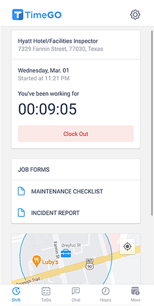 Review any employee's GPS movement at any time during or after the shift. You may even narrow down to any particular timeframe of minutes or hours within the shift.